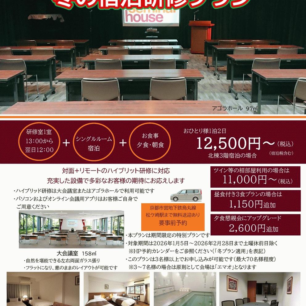 研修・会議 Conference 冬の宿泊研修プラン2026土曜休前日を除く期間限定 "エマオ"合宿プラン2025-2026秋冬 京都市宿泊税2026年3月1日改正のお知らせ 2025年度研修パックのご案内 団体の申し込みご利用の流れ よくあるご質問Q & A